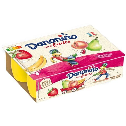 Danonino de délicieux petits suisses aux fruits ( fraise, banane, pêche-poire), fabriqués avec du lait de Normandie. Grâce à sa recette inchangée, ils sont toujours source de calcium, de vitamine D et sans arômes artificiels, sans colorants*, sans conservateurs. *La couleur est apportée par un concentré de végétaux. fromage blanc sucré aux fruits enrichi en calcium et en vitamine D